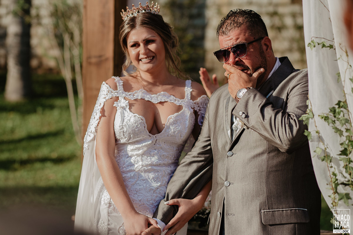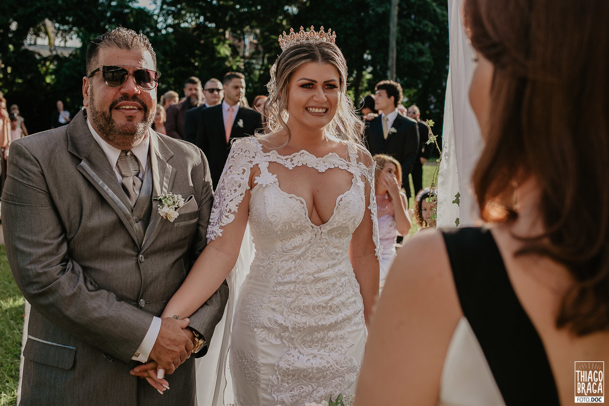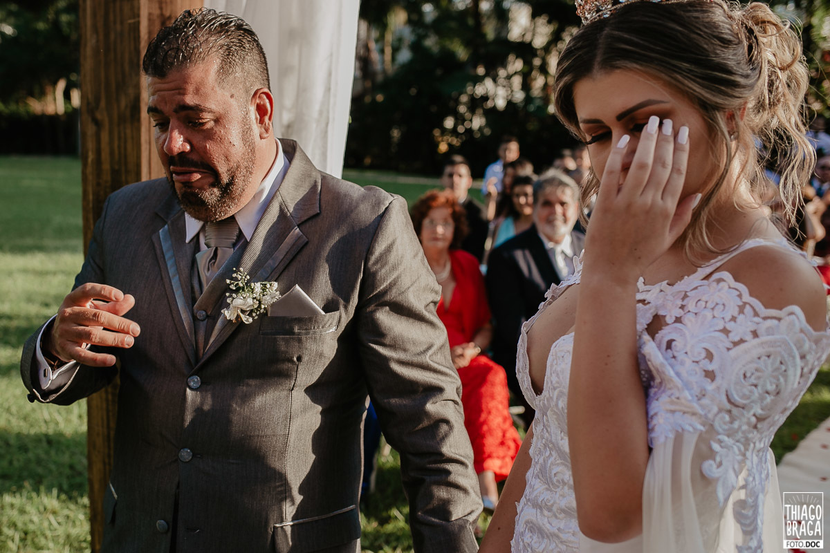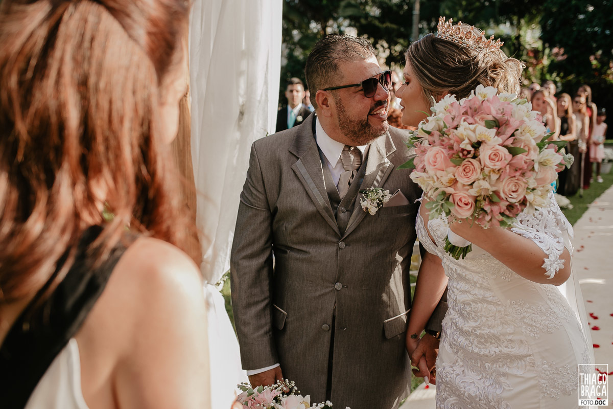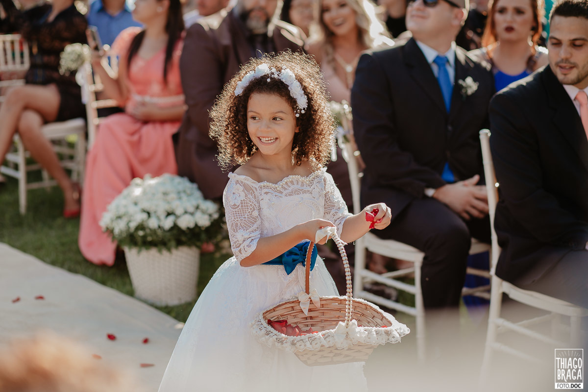 A cerimônia do Espaço Mimos e Festas foi marcada por momentos de muita emoção e alegria, contou com a presença da Laine Valgas como mestre de cerimônia, daminha com o sorriso mais lindo de todos os tempos, chegada da noiva de helicóptero, entrada das alianças trazidas pelo filho Osvaldinho e saída no pôr do Sol.