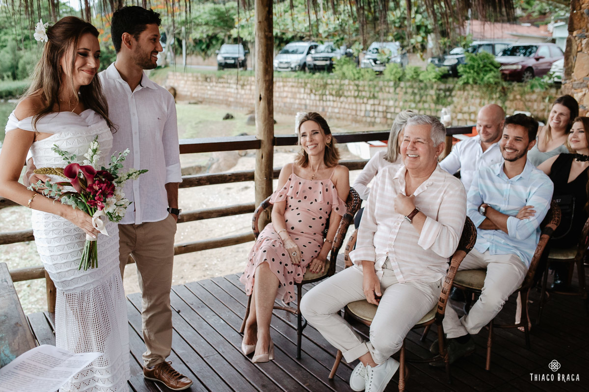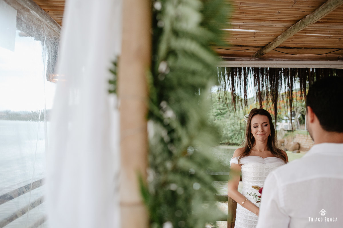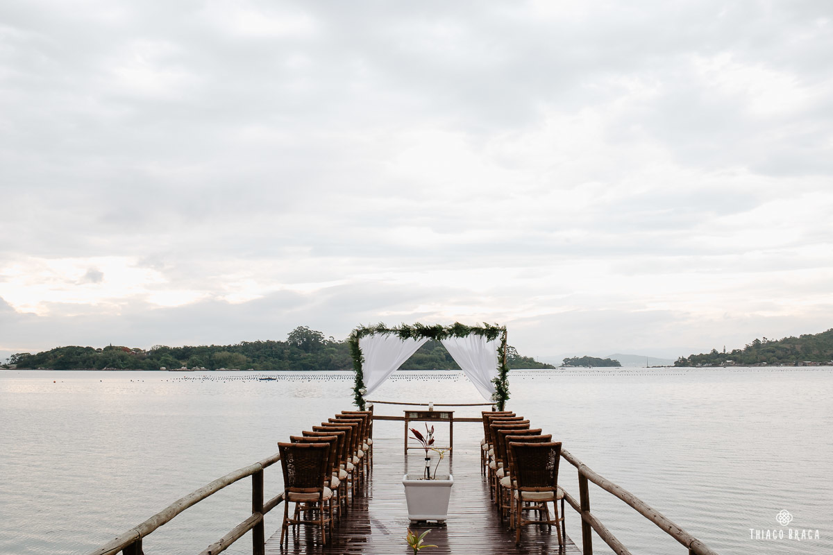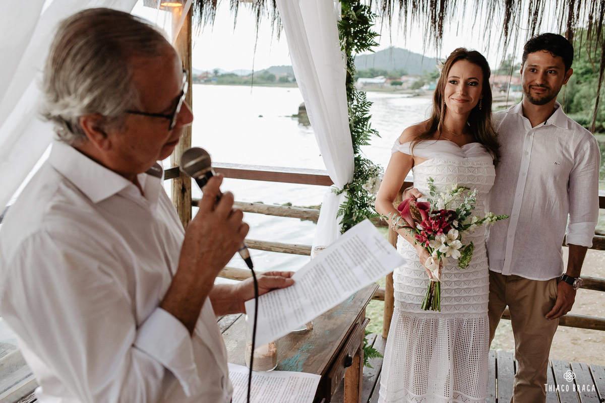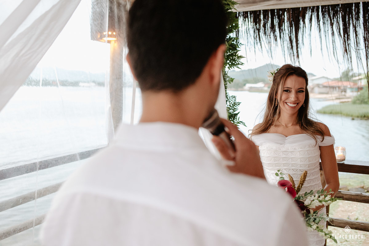 Uma cerimônia para 20 pessoas, totalmente intimista, recheada de sentimento, de luz, de paz, de energia! Sem protocolos, sem regras determinadas, num local lindo: em cima das águas calmas do Ribeirão da Ilha.