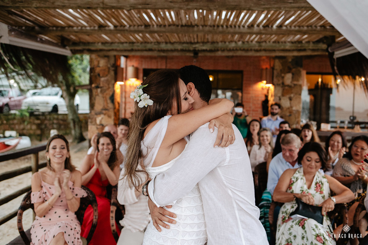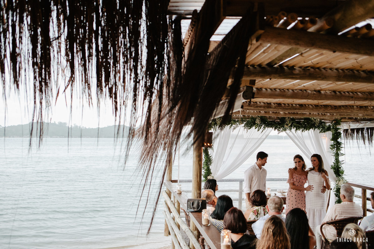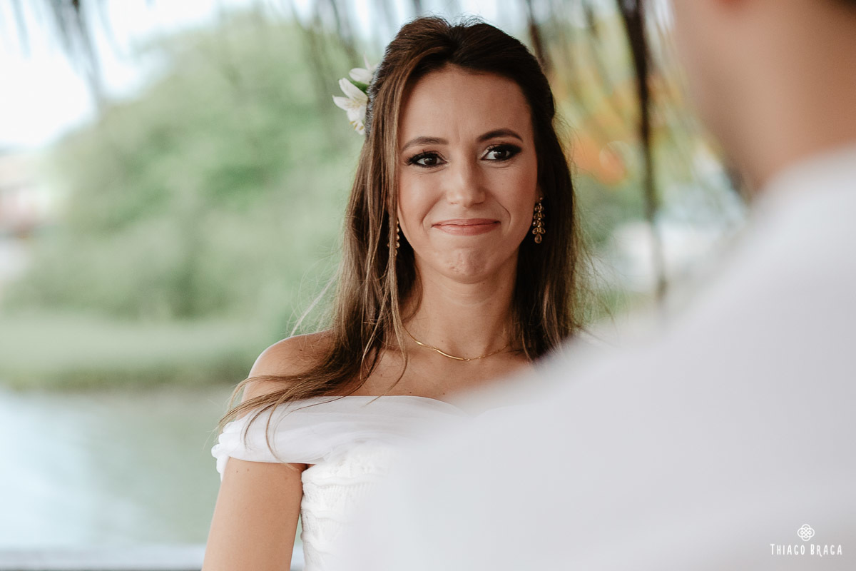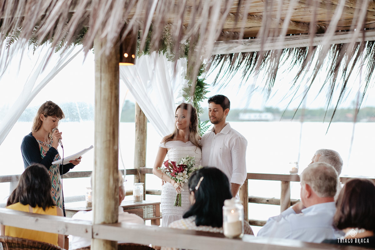 Uma cerimônia para 20 pessoas, totalmente intimista, recheada de sentimento, de luz, de paz, de energia! Sem protocolos, sem regras determinadas, num local lindo: em cima das águas calmas do Ribeirão da Ilha.