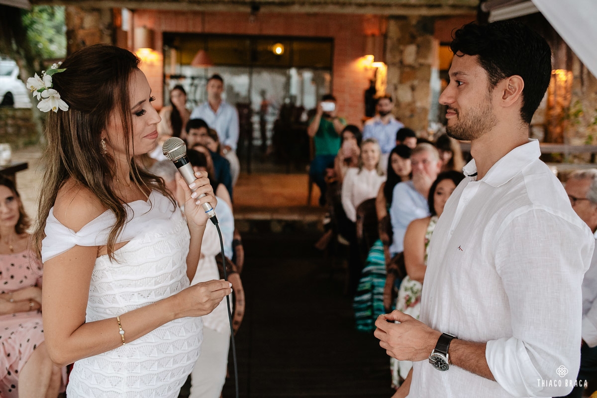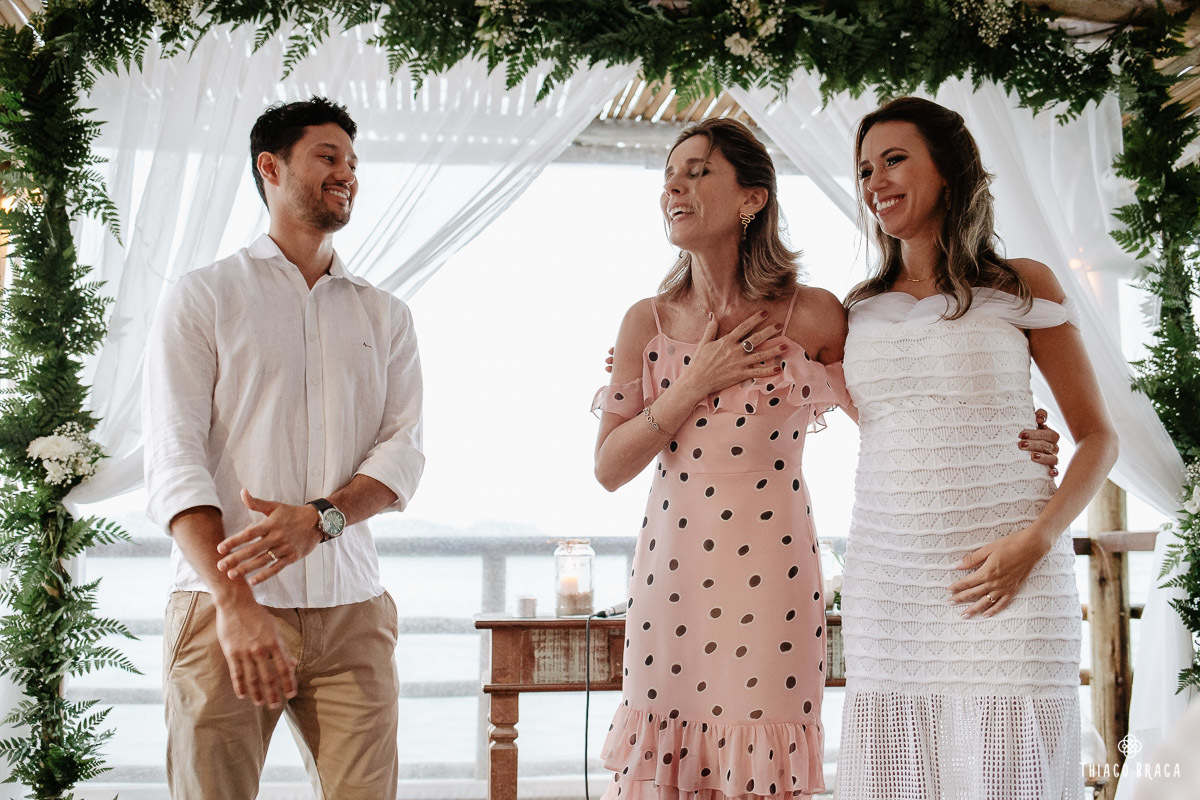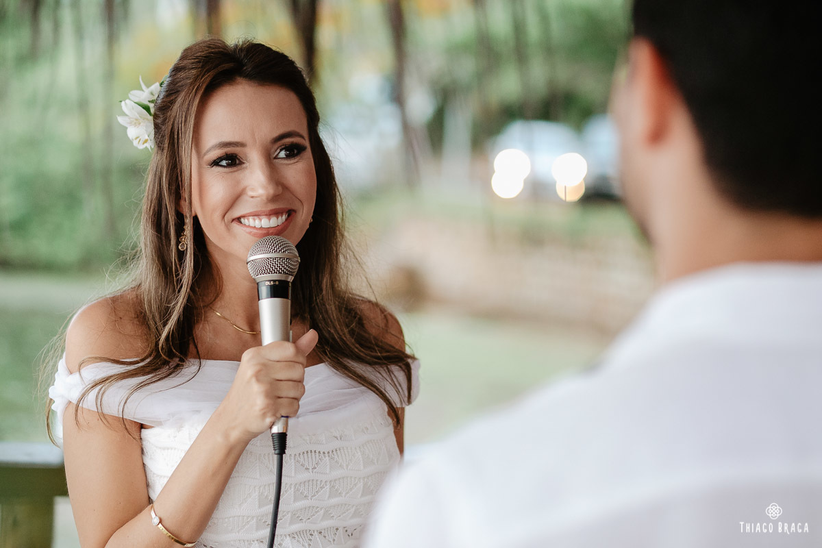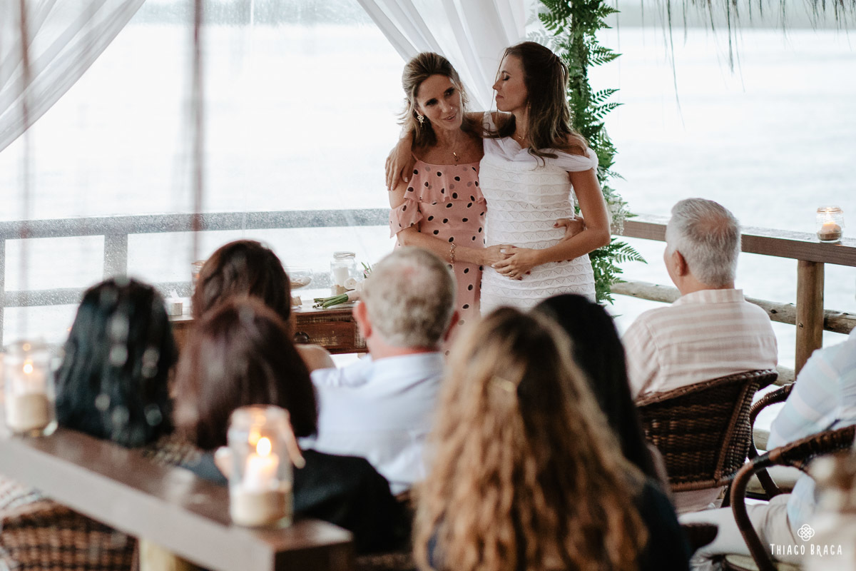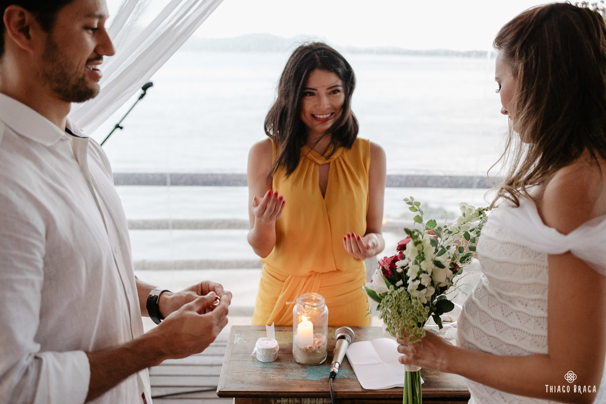 Uma cerimônia para 20 pessoas, totalmente intimista, recheada de sentimento, de luz, de paz, de energia! Sem protocolos, sem regras determinadas, num local lindo: em cima das águas calmas do Ribeirão da Ilha.