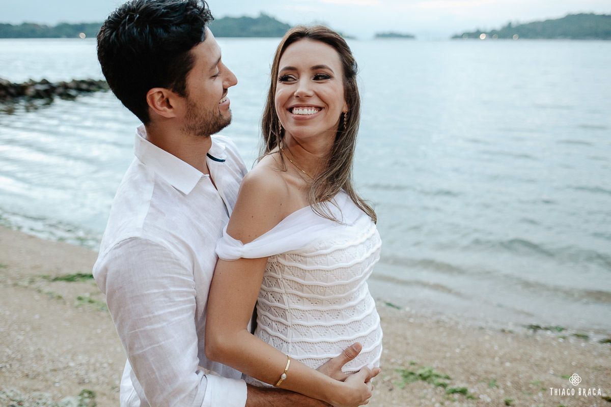 Cada detalhe da decoração carregava carinho, feitos artesanalmente por pessoas da família, catando conchas e areia da praia por semanas ou fazendo os lacinhos da maneira mais bonita. Todos participaram, cada familiar tinha uma função: decoradora, cerimonialista, celebrante, equipe de som, poeta, cantora, músico. Essa simplicidade e união criou um clima de alegria e carinho que contagiou todos! Eles gostariam de ter convidado muitas pessoas, mas a circunstância agora é outra, tem baby a caminho, a Naomi esta chegando em 2019 para abençoar e alegrar ainda mais essa família.