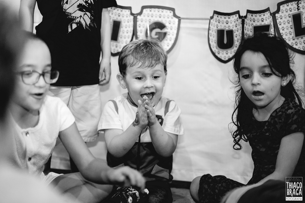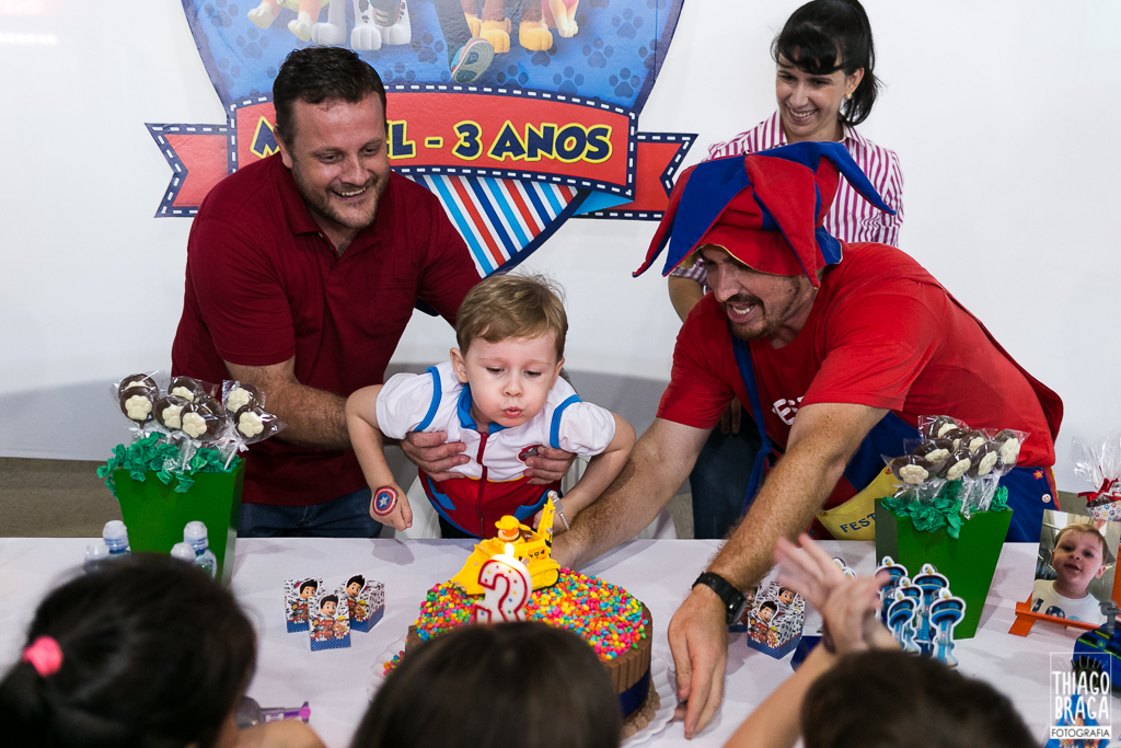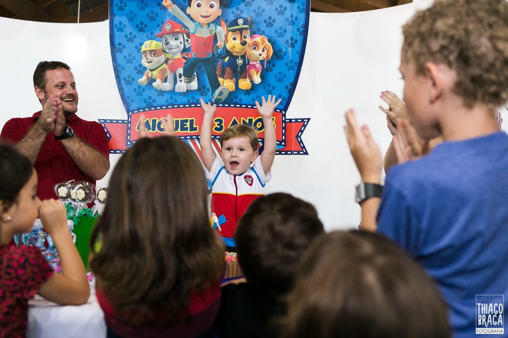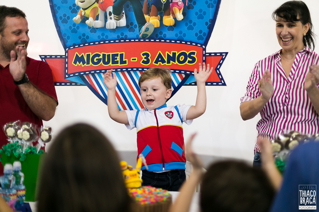 Apaixonado pela patrulha Canina, o aniversariante estava muito feliz com a festa, os amigos, a família e os detalhes que os papais prepararam com muito carinho para esse dia. A Laura me contou que passou meses pensando e preparando cada cantinho da festa. E o mais legal, é que com os próprios brinquedos do Miguel. Aproveitando ao máximo aquilo que faz parte ja do seu contexto, da sua vida e daquilo que mais gosta. Me encantei com essa energia, a mesma que seguiu na festa toda.