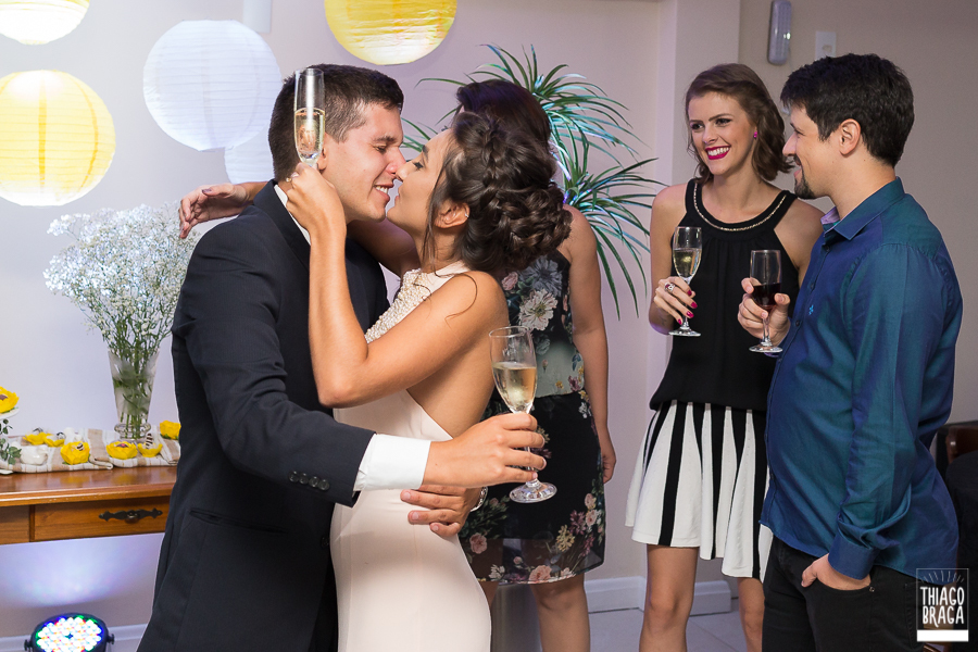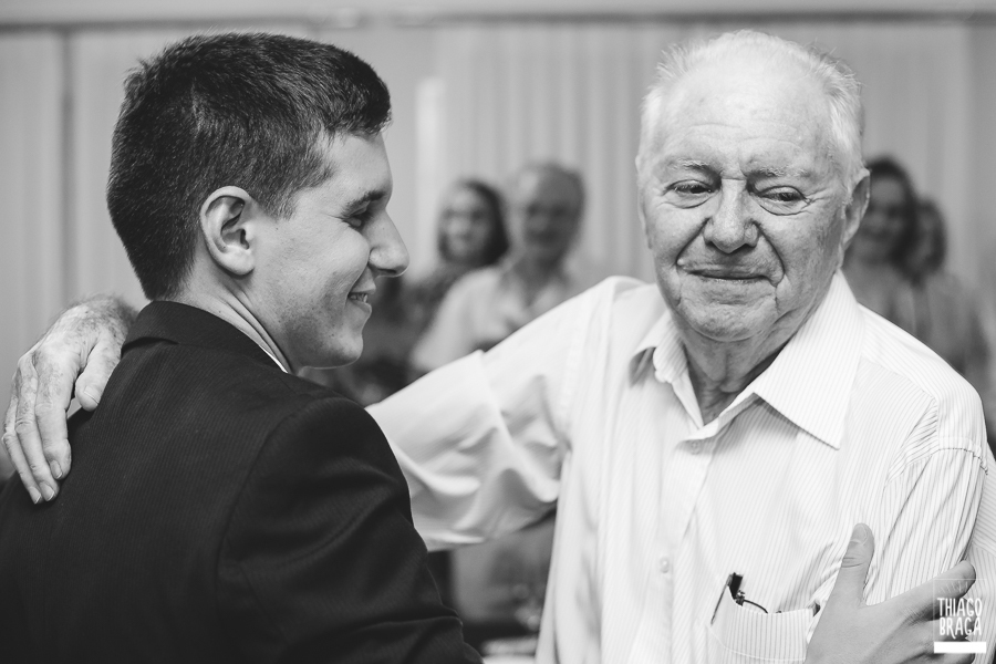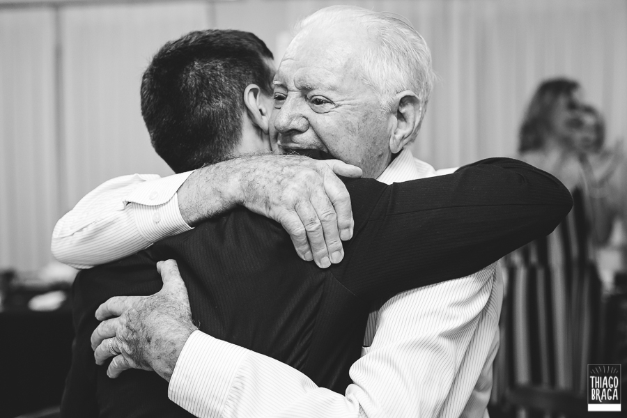 Quando o Filipe chegou foi uma alegria ainda mais intensa, com aquela calorosa recepção. Recepção por sinal, foi um valor destacado pelos pais do Filipe para com seus convidados. Tinha até um varal de fotos de família, com diversas lembranças e memórias resgatadas da história e da trajetória do Filipe. Após o jantar, muito caprichado, fizemos algumas fotos do famoso “retratos de família” com todos os presentes, com direito até a sessão externa, na linda vista da varanda do salão de festas.